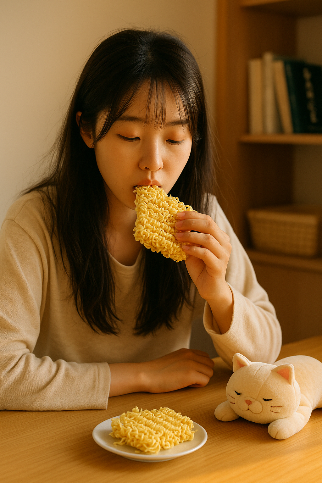 어젯밤이었어요. 배는 너무 고픈데 몸은 무겁고 머리는 멍하고, 하루 종일 힘든 일이 쌓이다 보니 몸이 천근만근 같았어요. 냉장고를 열어봤는데 딱히 당기는 건 없고, 뭐라도 씹고 싶어서 결국 눈에 보이던 라면 하나를 그냥 부수어먹었어요