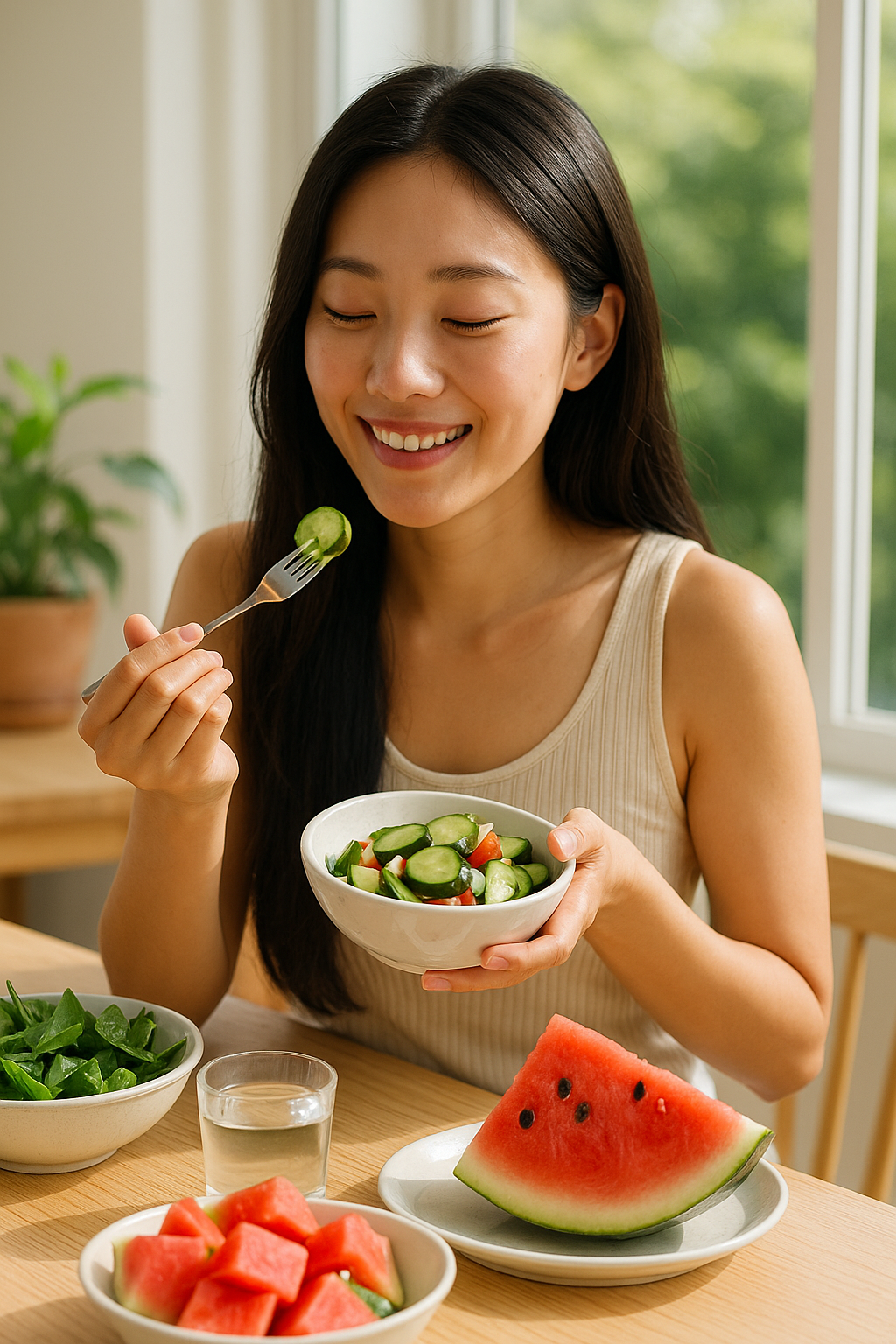 날이 더워질수록 물만 많이 마시면 된다고 생각하기 쉽죠? 근데 의외로 ‘무엇을 먹느냐’가 수분 보충에도 큰 역할을 해요. 특히 여름에는 냉장고 안 신선한 채소나 과일이 큰 힘이 됩니다.